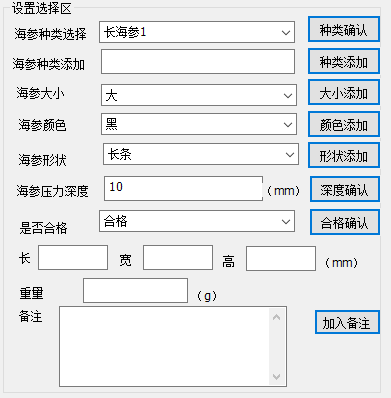 【Set selection area】Set the limit threshold for sea cucumber identification parameters
